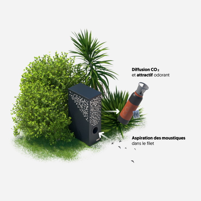 L’appareil les attire donc avant qu’elles ne piquent, puis les aspire silencieusement dans une chambre de capture, où elles meurent par dessiccation. Il agit ainsi sur le cycle de reproduction et contribue à faire baisser durablement la population locale.