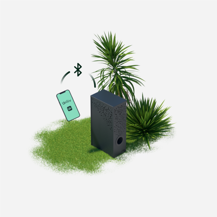 L’appareil est équipé d’un module Bluetooth. Grâce à l’application mobile dédiée, vous pouvez contrôler l’état du piège, suivre les performances, lancer ou arrêter la ventilation, et être alerté lorsque les consommables doivent être changés.